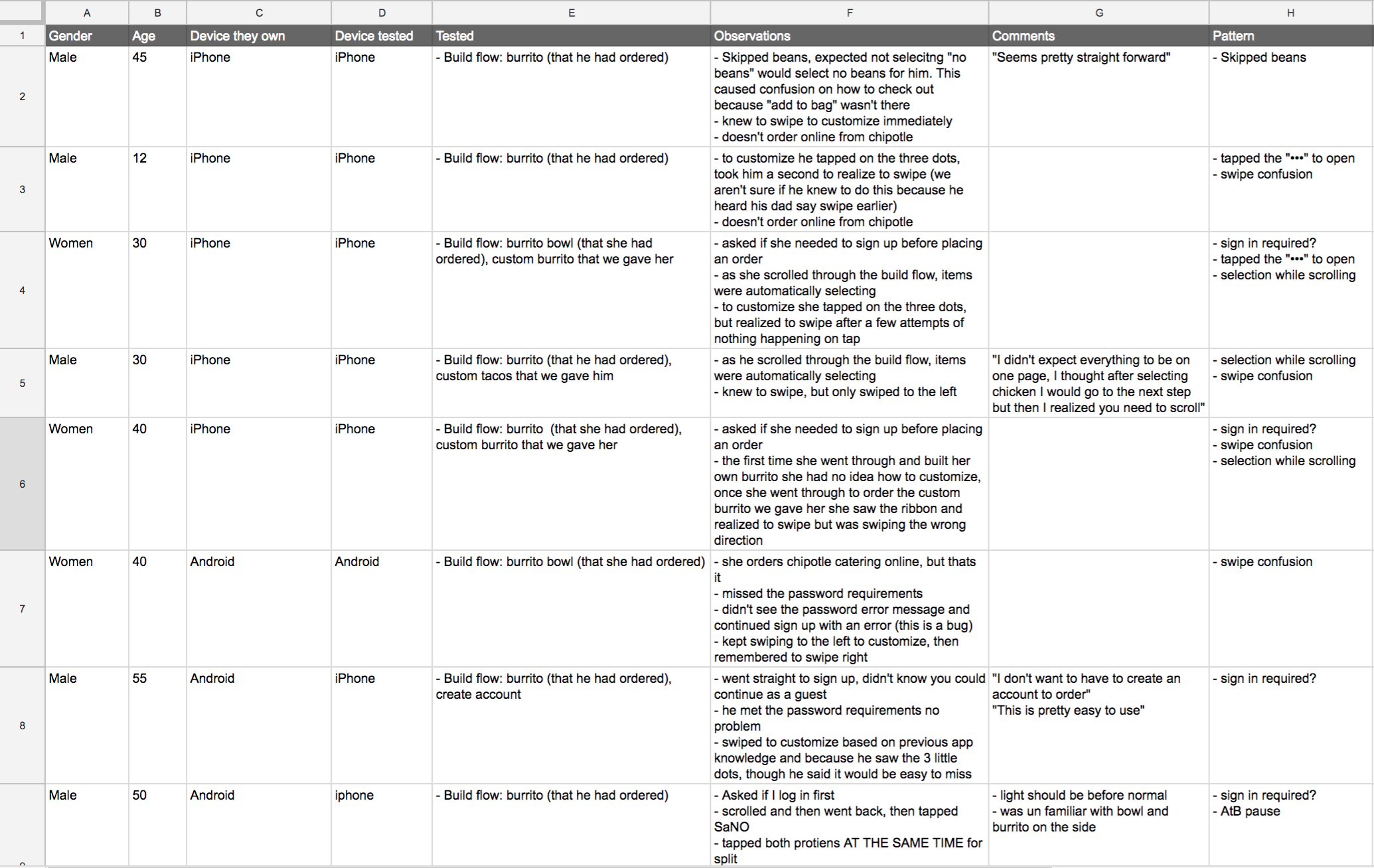 We reframed the conversation away from “building a better app” to “better serving the mobile customer” and thinking through the entire mobile customer experience. Partnering with Chipotle we conducted primary and secondary research, including in-restaurant experience research to define personas, the mobile customer experience journey, and development of a robust product backlog with touch-points across channels.