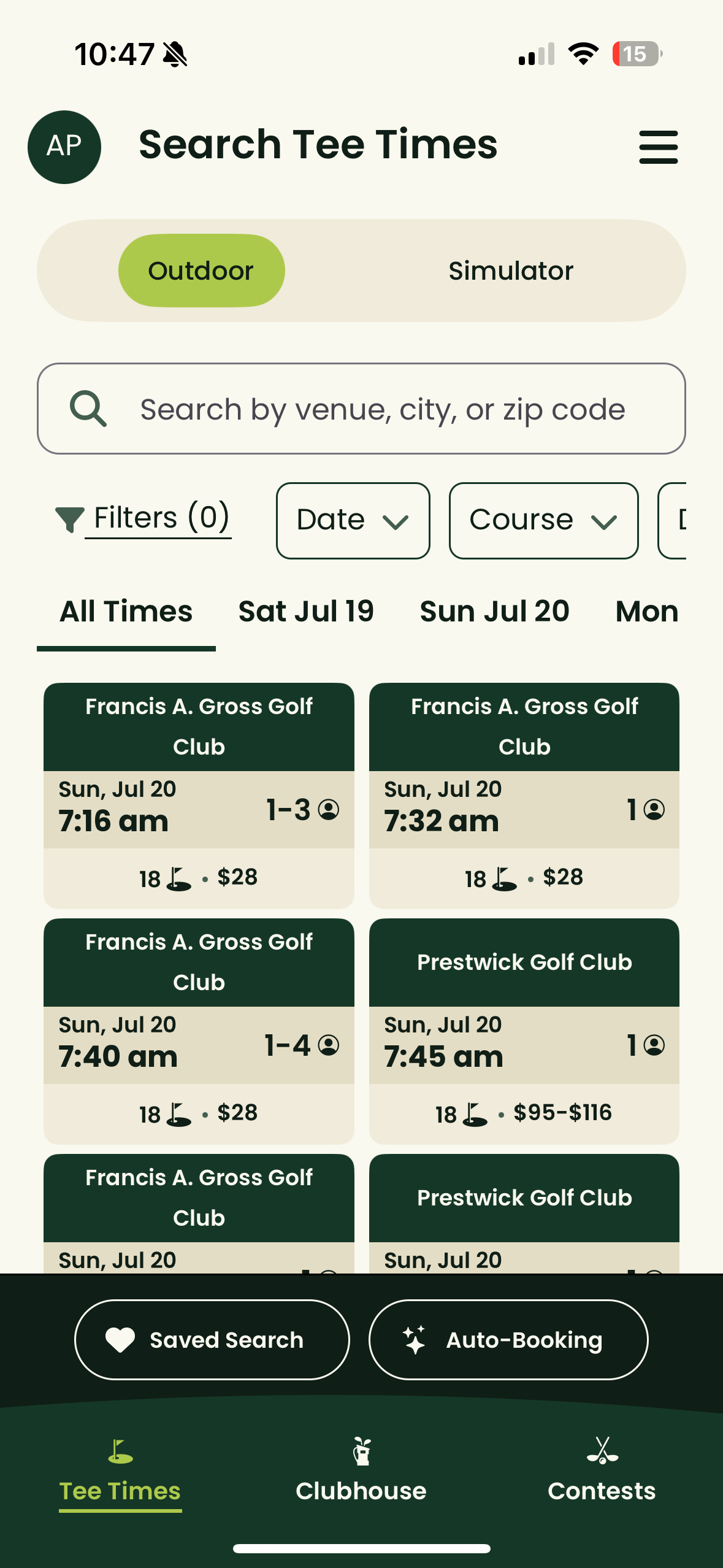 Be the One-Stop Destination for Golf: Aggregate tee times across courses and simulators, making it easy for golfers to book, play, and compete — all in one place.
